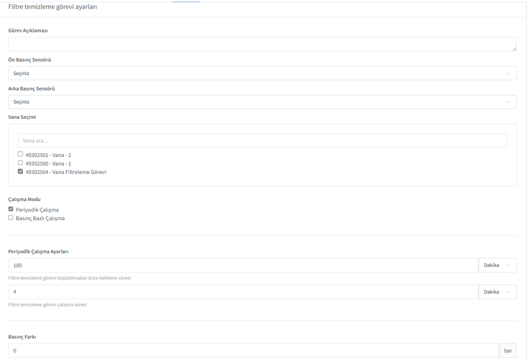 Drip Irrigation Filter Cleaning and Smart Tracking System maximizes your drip irrigation efficiency thanks to filter tracking and automatic cleaning mechanisms. With features such as continuous pressure tracking, automatic cleaning, and performance monitoring, this system extends your filter life, optimizes water management, and increases agricultural productivity. Additionally, thanks to continuous tracking over the internet and automatic alarms, it allows you to detect filter clogging and contamination situations in advance and take precautions.